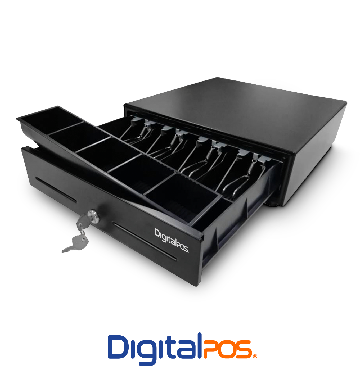 Cajón monedero de efectivo metálico para puntos de venta • Hecho de acero de gran calibre, adecuado para uso pesado y vida útil prolongada • Dimensiones Cajon: 330(W)x348(D)x90(H) mm • Dimensiones empaque: 400x380x135 (mm) • Diseño de bandeja: 8 puestos de monedas / 4 de billetes con clip metálicos • Riel en plastico resitente ABS de alta duración • Ciclo de vida: MTBF 1,000,000 aperturas + • Interfaz: RJ12 para impresora estadandar EPSON • Micro switch incluido • Bandeja de monedas extraíbles • 2 Ranura de medios dentro de la bandeja de monedas • 1 año de garantía • Peso: 3.6kg.